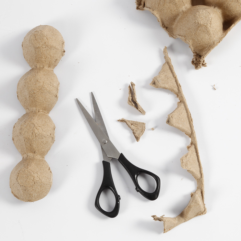 Börja med klippa äggkartongen med en sax.