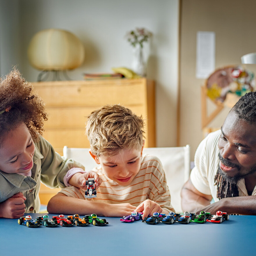 Ge dig ut på banan och upplev spänningen i Formel 1. Öppnar de hemliga lådorna i LEGO® F1® racerbilsserien (71049) och se vilken bil du får. Seten bjuder på en överraskning i varje låda och engagerar alla som vill skapa egna berättelser och leka själva eller med vänner. Du samlar en hemlig F1-racerbil i varje set och jagar totalt 12 modeller.