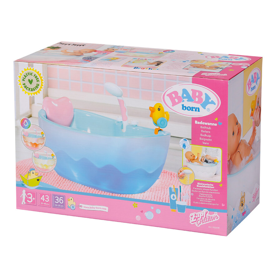 • Innehåller: - BABY born Bad badkar med ljus- och ljudeffekter - kudde och ankspruta