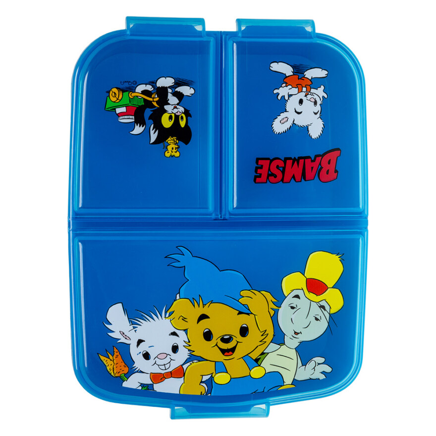Håll maten fräsch och organiserad med denna praktiska lunchlåda med tre separata fack. Perfekt att ta med till skola, dagis, stranden eller andra äventyr.