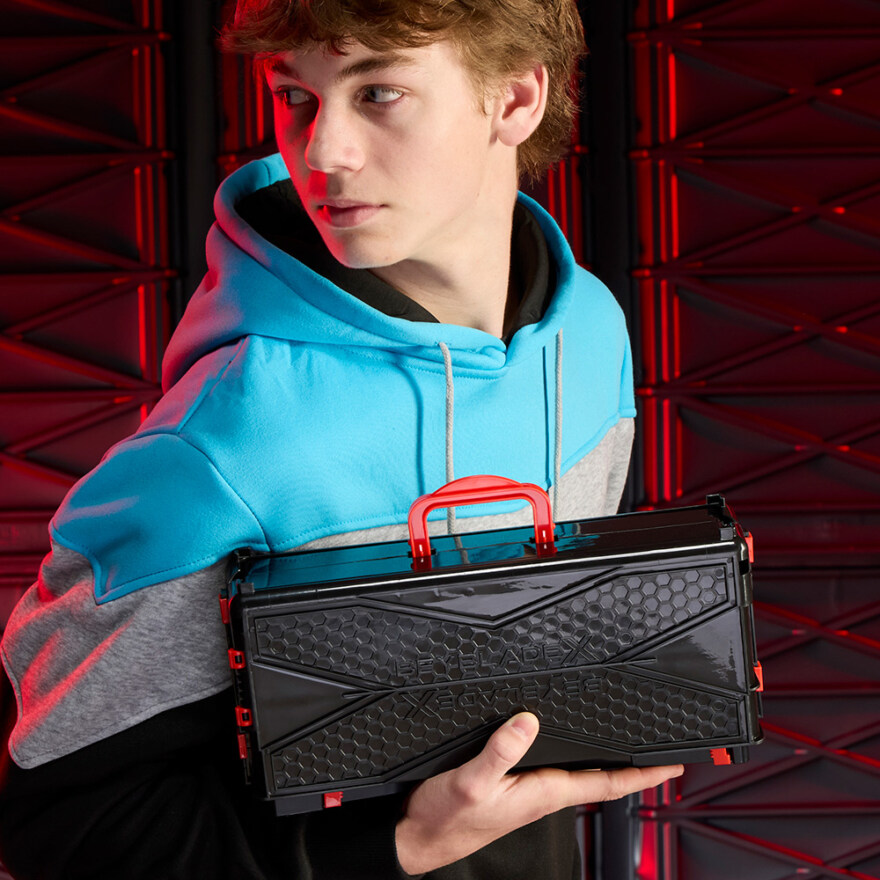 Ge dig in i actionfyllda strider med Beyblade Burst BBX Clash & Car! Skjut iväg din Beyblade med kraft och se den snurra i episka dueller. Ladda bilen, släpp loss och låt den köra in i striden för ännu mer intensitet.