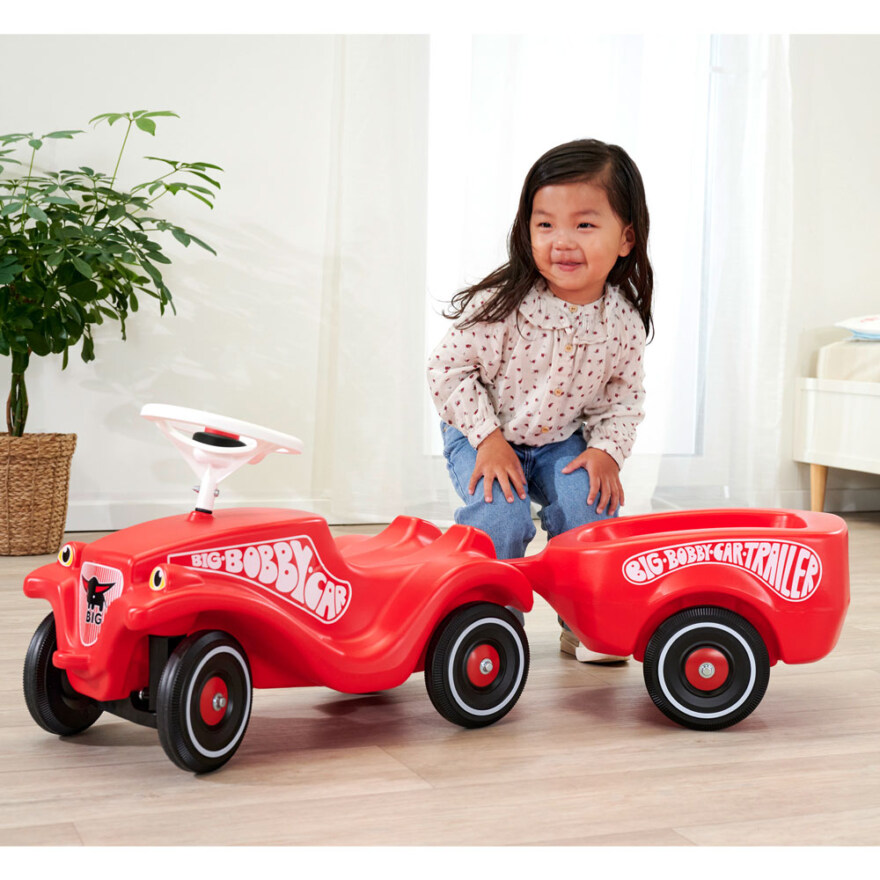 Ett perfekt tillbehör till barnens favorit BIG Bobby Car. BIG Bobby Car släp - passar alla BIG Bobby Car och BIG Bobby Scooter. I släpvagnen finns gott om plats för allt som ska med på den lilla färden! Den stabila släpvagnen kan enkelt kopplas ihop med alla BIG-Bobby Cars genom det medföljande säkerhetskopplingsstiftet. Avrundade hörn och kanter gör Big Bobby Car-trailern säker och praktisk att leka med för alla åldrar.