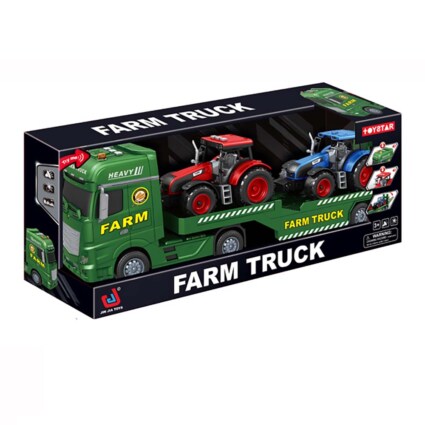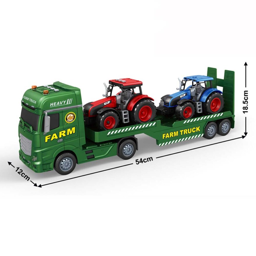 Kör iväg med den stora biltrailern på 63 cm, lastad med traktorer! Trailern är utrustad med ljudeffekter, vilket gör leken ännu mer spännande. Perfekt för små traktorfantaster som vill köra och lasta.