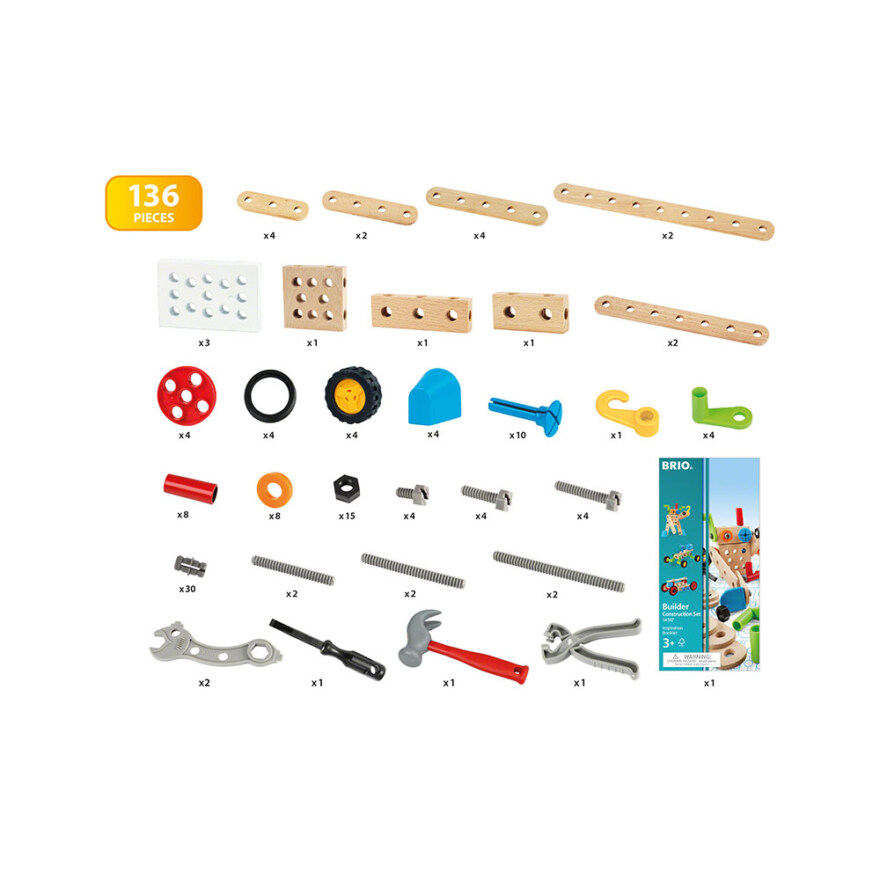 Låt kreativiteten flöda med BRIO Builder set, som innehåller 136 delar. Använd de olika komponenterna och verktygen för att bygga nästan allt du kan föreställa dig. Skapa, konstruera och utforska dina egna idéer med detta mångsidiga byggset.