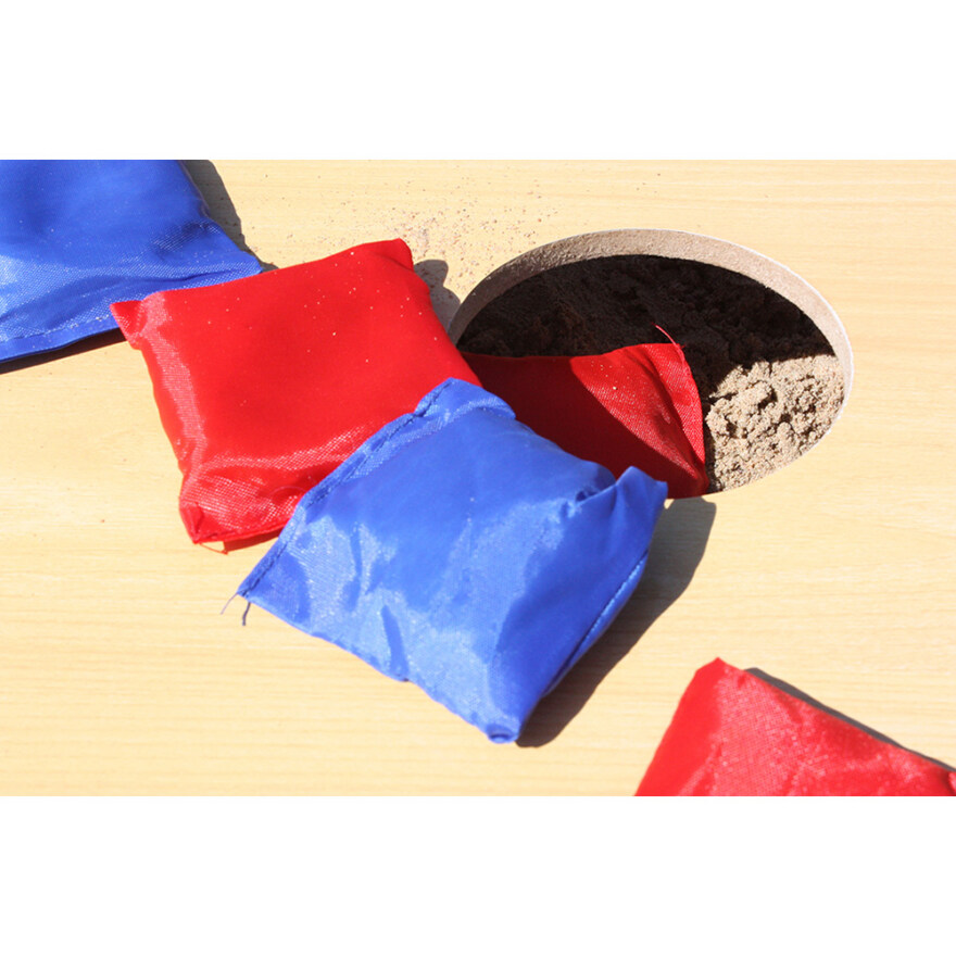 Kasta ärtpåsarna på plattorna och vinn flest poäng. Om du kastar en påse genom hålet får du ännu fler poäng. Först till 21 poäng vinner!