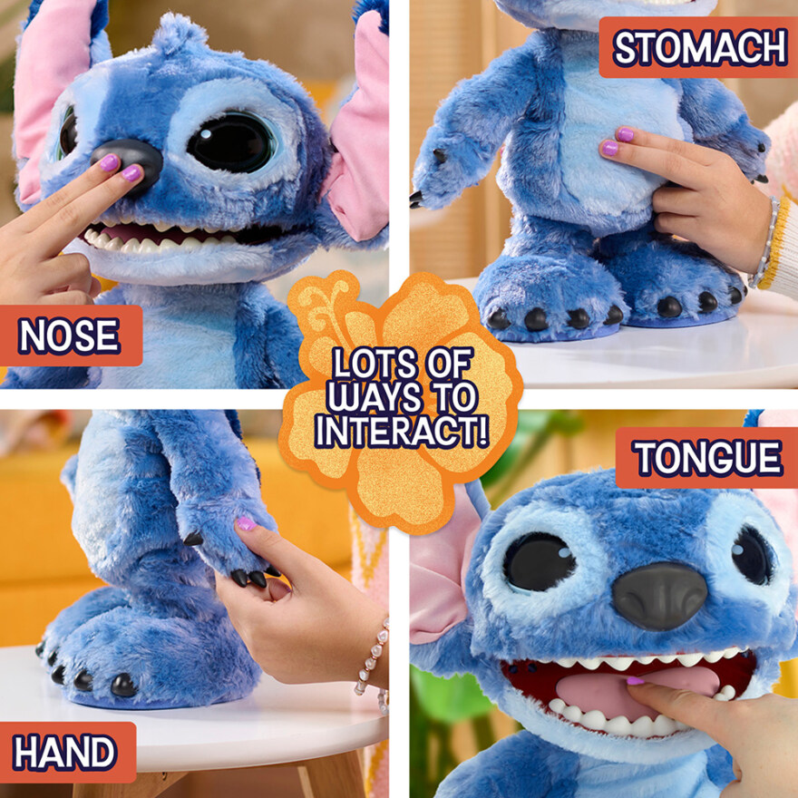 Disney Stitch plysch 34 cm erbjuder en interaktiv upplevelse som lockar både barn och samlare. Produkten spelar över 50 ljud och reaktioner och rör ögon, öron, mun och huvud för att skapa en levande och engagerande känsla. Stitch är mjuk och har den välkända Disney-designen.