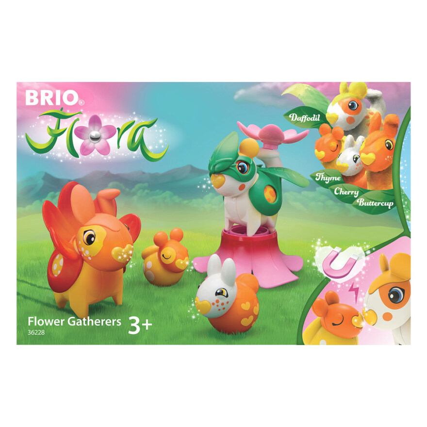 Ge dig ut i skogen med Blomstersamlarna från BRIO Floras magiska värld. Det här charmiga leksetet innehåller två Flora-figurer och två Buddy minifigurer – Daffodil, Buttercup, Cherry och Thyme. Hjälp dem att leta efter blommor och andra skatter. Ta på dem deras dräkter och använd deras magiska nosar för att plocka upp fynden. De här figurerna är helt kompatibla med alla BRIO Flora-leksaker och bjuder in till fri lek – perfekt för små händer och barn med gränslös fantasi.