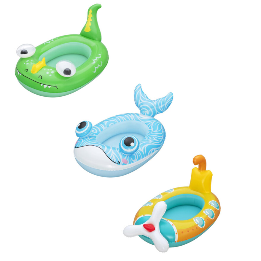 Flytbåt 108x65 cm är uppblåsbar och låter barn leka och flyta på vattnet under varma sommardagar. Flytbåten passar för lek i pool eller vid strand. Tänk på att barn aldrig ska lämnas utan uppsikt av vuxen vid vatten.