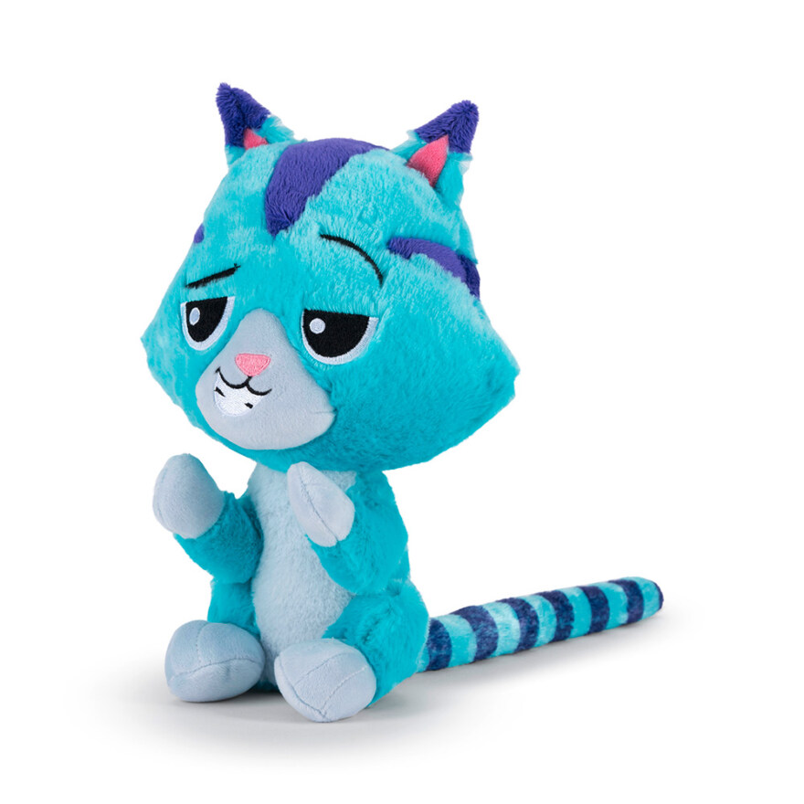 Sprattkatten från Netflix-serien Gabby's Dollhouse som ett mysigt gosedjur. Den lekfulla katten är supermjuk och gosig - den perfekta följeslagaren för både lek och läggdags.