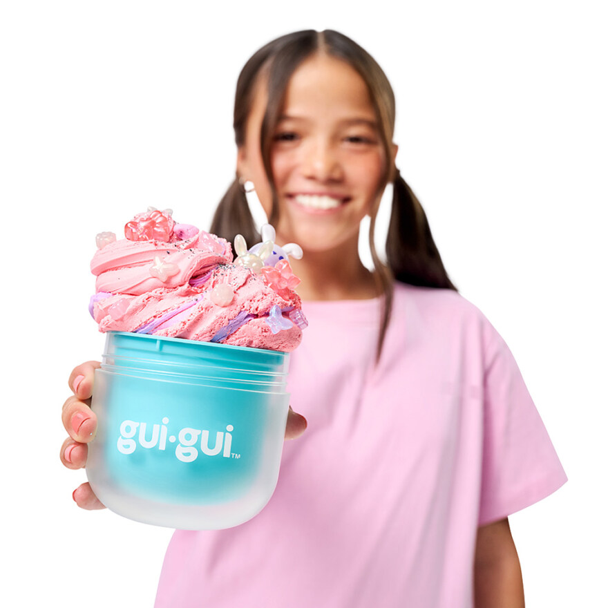 Utforska GUI GUI Slime och skapa färgstarka, sensoriska slimeäventyr. Öppna burken och knåda en slime som glänser, sträcker sig, fluffar sig eller känns mjuk som smör – beroende på vilken variant du får. Tillsätt charms och glitter för att pynta din slime och låt fantasin styra dina kreationer. Upptäck en söt samlarfigur i varje set och bygg upp en egen liten värld av lek och kreativitet. Perfekt för barn som vill forma, sträcka och skapa magiska slimeupplevelser.