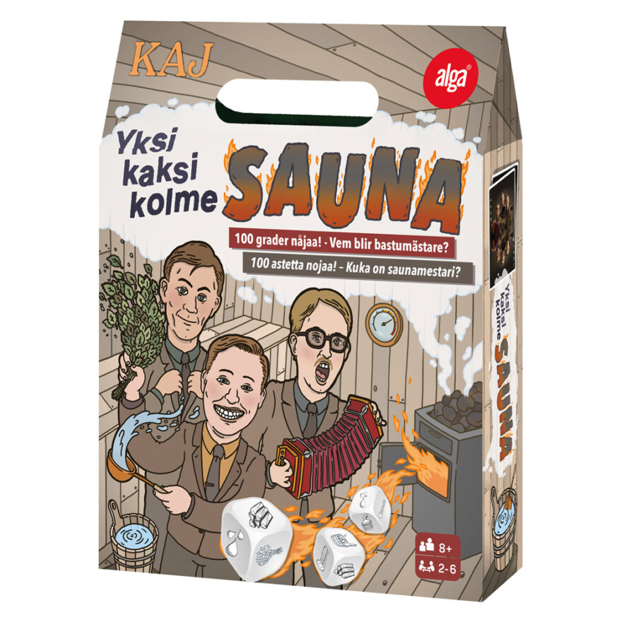 Kaj – Sauna Partygame bjuder in till ett fartfyllt och humoristiskt sällskapsspel där spelarna tävlar om att nå 100 grader först. Spelet skapar energi och skratt när deltagarna matchar kort och tärningar, höjer temperaturen och ropar den klassiska basturamsan för att ta ledningen.