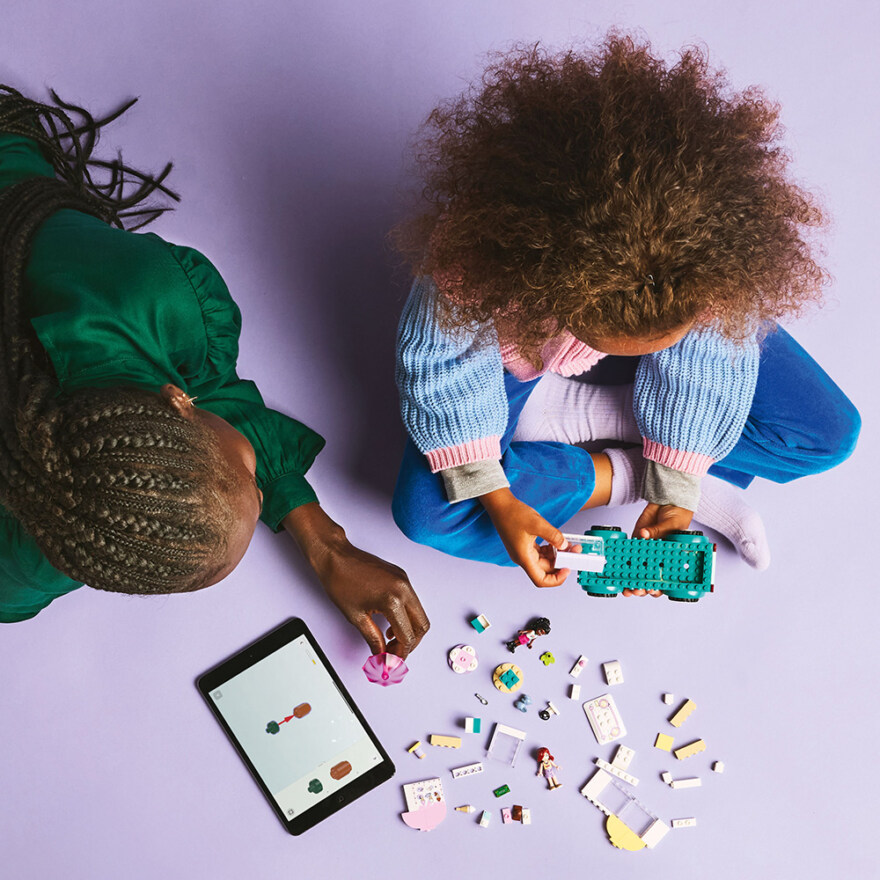 Här är en läcker överraskning för barn från 4 år som älskar låtsaslekar. Flickor, pojkar och unga byggare kan iscensätta roliga kundinteraktioner med leksetet LEGO® Friends Heartlake City Glassbil (42644). Byggsetet hjälper barn att lära sig bygga och innehåller en byggbar glassbil, 2 minidockor, en kaninfigur och mattillbehör.