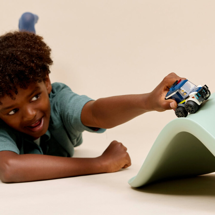 LEGO City 60481 Fordon – polisbil ger barn fartfylld och actionrik utryckningslek. Barnet bygger en kompakt polisbil med tuff design. Leken låter barnet köra genom stadens gator och gränder. Bilen hanterar snabba jakter och våghalsiga uppdrag. Setet uppmuntrar fantasi, berättande och lekfull polisaction.