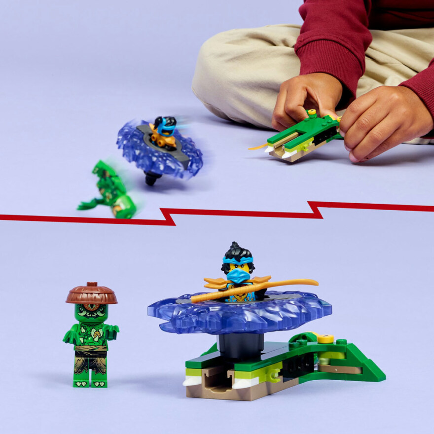 LEGO NINJAGO 71849 Nya mot spinner med muterat monster levererar intensiv och fartfylld ninjastrid. Du placerar det muterade monstret i snurrleksaken och trycker på avfyrningsknappen. Spinnern rusar fram och kan slå loss kraftdelar vid träff. Nya undviker attackerna och går till motanfall. Setet driver snabba strider, spänning och actionfyllda berättelser i NINJAGO-världen.