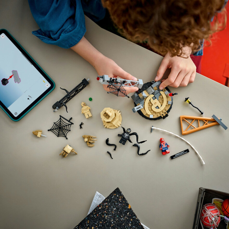 LEGO Marvel 76334 Episk strid: Spider-Man mot Sandman placerar dig mitt i ett explosivt superhjälteäventyr. Du återskapar en dramatisk scen från Spider-Man 3 där Spider-Man svingar sig in med nätrep. Sandman reser sig ur spillrorna och hotar staden. Venom dyker upp med sina tentakler och förändrar striden. Modellen fungerar både för intensiv lek och som actionfylld uppvisning i rummet.