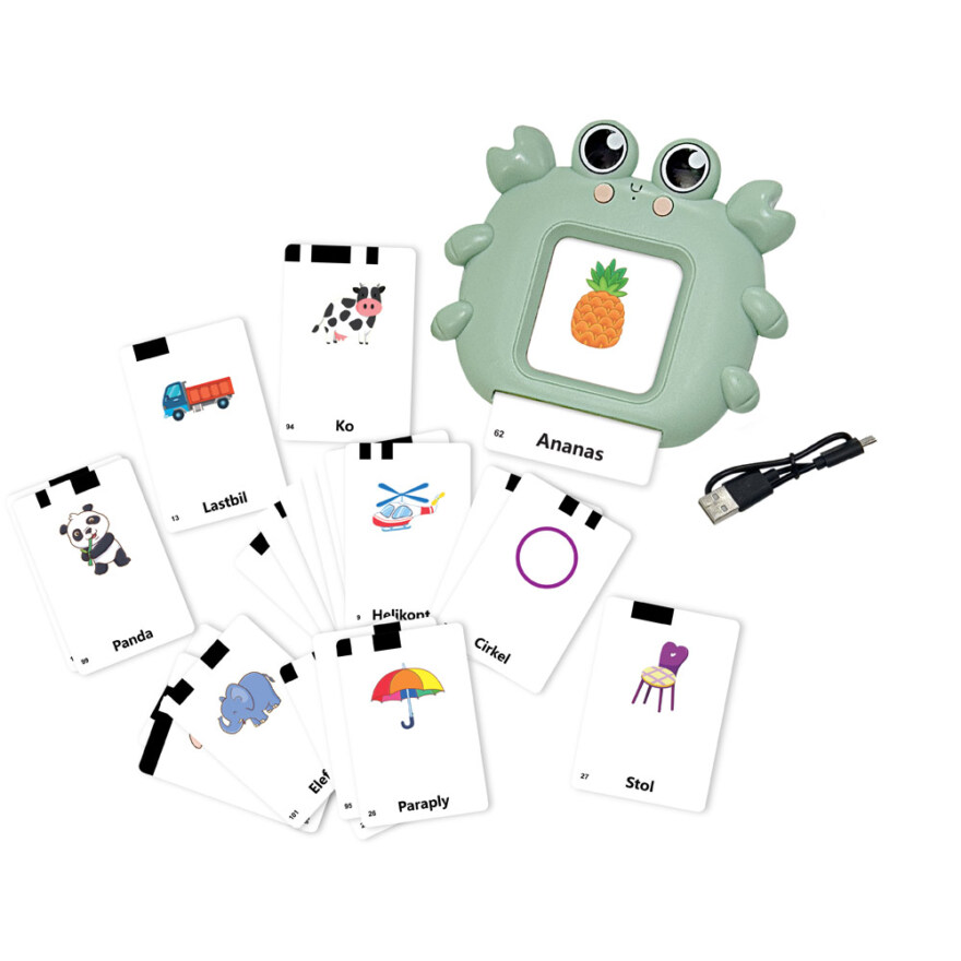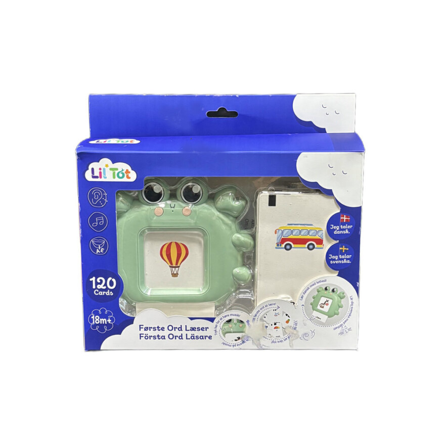 Koppla bilder till ord genom interaktiv och lärorik lek med Lil'Tot First Words Reader . Sätt i ett kort och hör ordet läsas upp högt på svenska eller danska. Lil'Tot First Words Reader stärker ordförråd och språkförståelse på ett engagerande sätt. Anpassa användningen enkelt genom att justerbara volymen. Upprepningsfunktionen uppmuntrar till självständig upptäckarglädje.