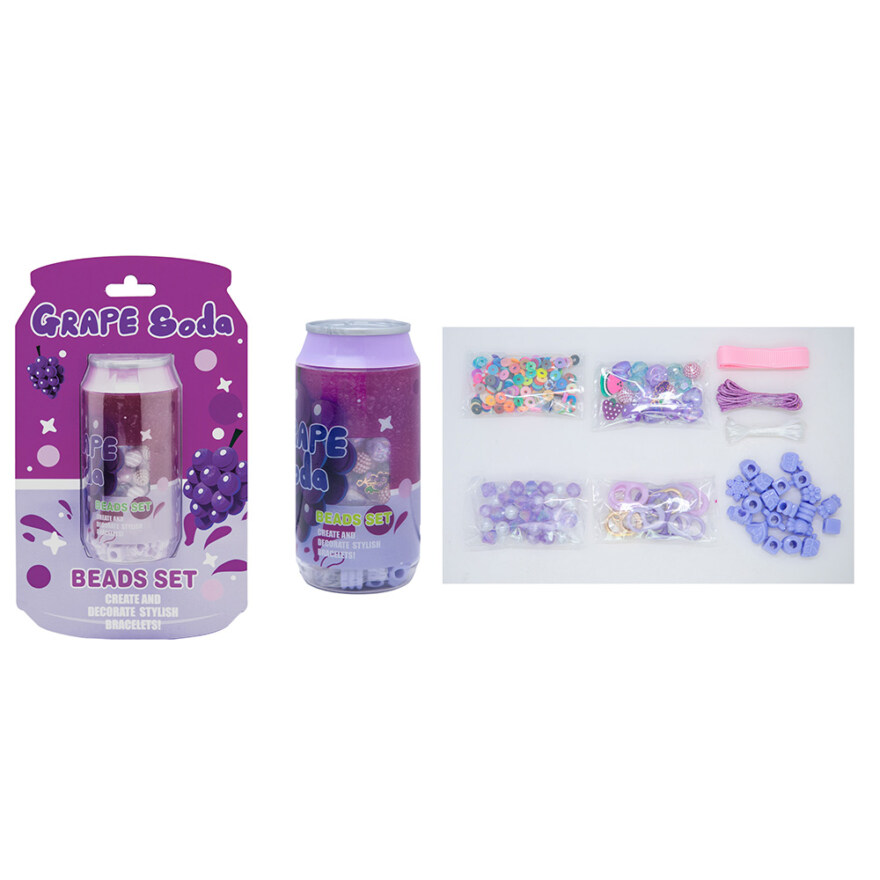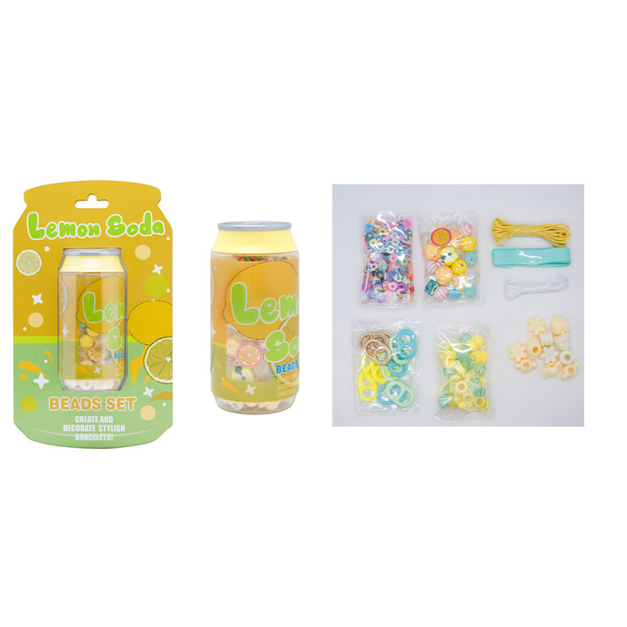 Detta kreativa pärlset är perfekt för barn som älskar att skapa sina egna smycken! Setet innehåller fyra söta läskburkar – Cherry, Grape, Orange och Lemon – fyllda med pärlor, berlocker och färgglada trådar. Klart att inspirera till timmar av fantasifull och fruktig smyckestillverkning. Passar barn från 6 år och uppåt, och är en utmärkt presentidé till små designers!