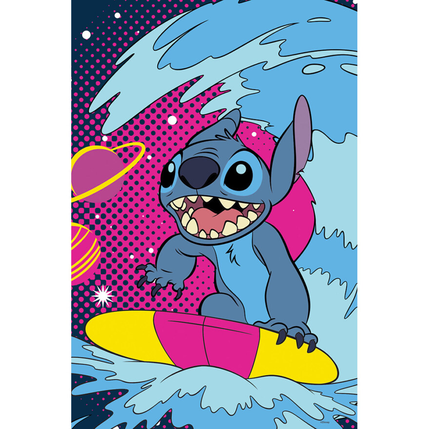 Prime 3D-pussel - Disney Stitch 200 bitar - Följ med Stitch på ett färgsprakande äventyr med detta unika 3D-pussel! Med 200 bitar och ett spektakulärt lentikulärt motiv av Stitch som surfar bland planeter och vågor, bjuder detta pussel på en spännande och visuell upplevelse för både barn och vuxna.