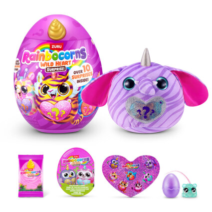 Rainbocorns Wild Heart Surprise bjuder på en magisk överraskningslek där barnet öppnar ett färgglatt ägg och hittar en mjuk och gosig Rainbocorn med ett hemligt hjärta. Upptäck flera roliga överraskningar i varje ägg och skapa en spännande unboxing-upplevelse fylld av glitter och färg. De charmiga karaktärerna gör det extra roligt att samla och leka med.