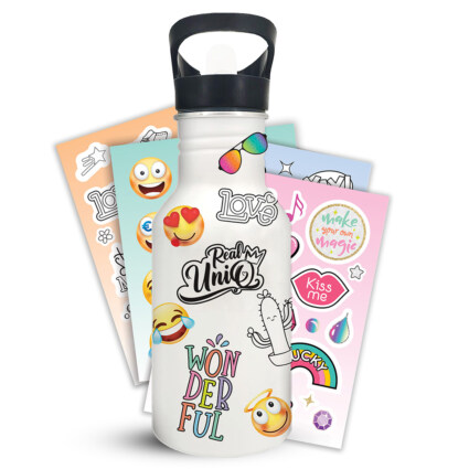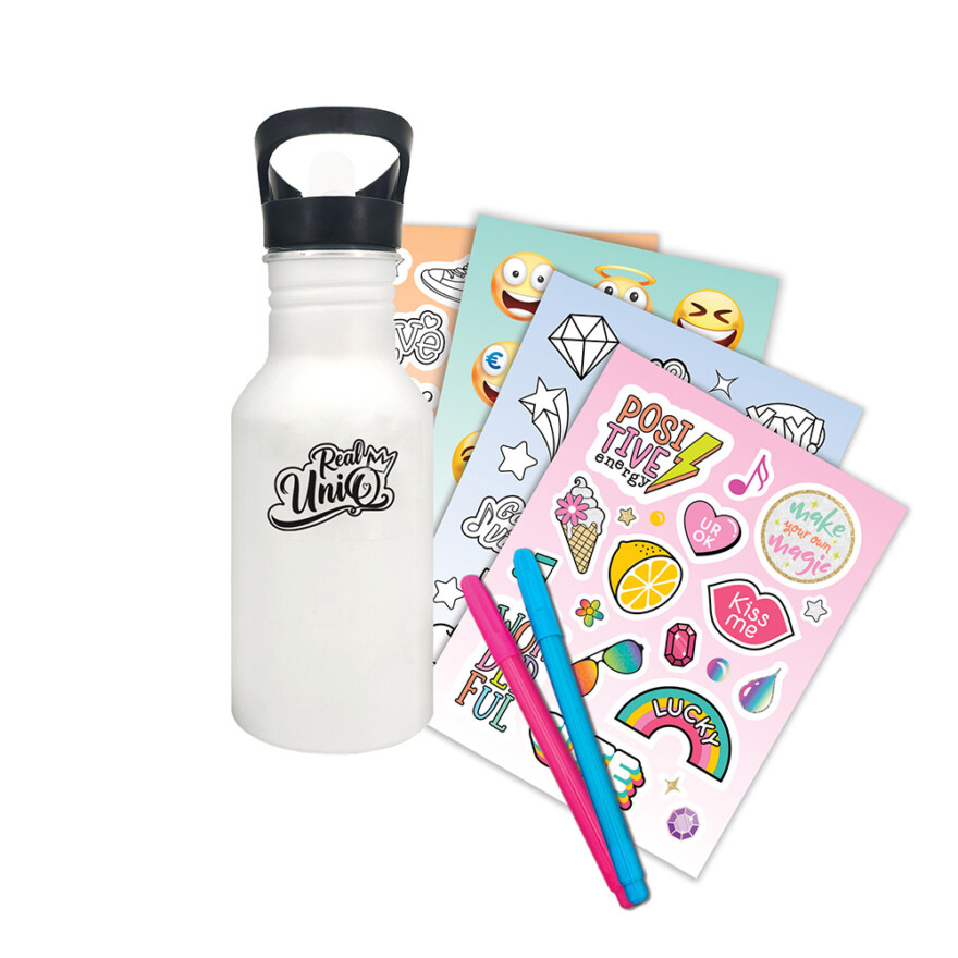 Skapa din egen unika vattenflaska som speglar din personlighet! Den här flaskan är lätt att känna igen bland många andra och blir en rolig följeslagare på alla dina äventyr. Perfekt att ta med i ryggsäcken eller pyjamasfestväskan.