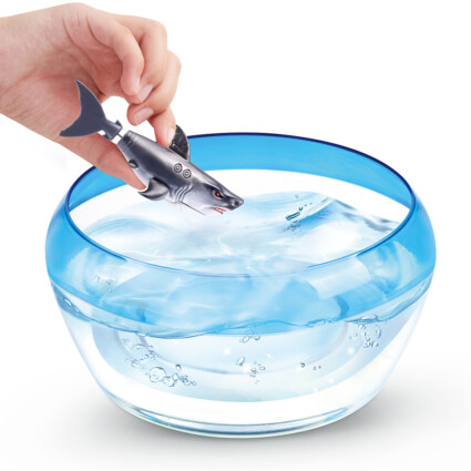 Robo Alive Swimming Shark skapar spännande vattenlek. Hajen aktiveras direkt vid kontakt med vatten och börjar simma av sig själv. Lägg ner hajen i badkaret eller poolen och se hur den rör sig realistiskt. Hajen simmar i flera riktningar och dyker under ytan. Den livliga rörelsen gör leken mer engagerande och passar perfekt för barn som gillar äventyr i vatten.