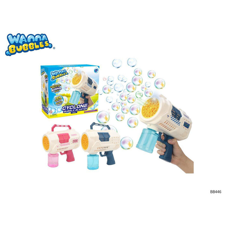 Skapa bubbelglädje med denna såpbubbelpistol! Fyll den med 160 ml såpbubbelvätska och njut av spektakulära effekter när bubblorna skjuts ut tillsammans med inbyggt ljus. Ladda enkelt de uppladdningsbara batterierna med den medföljande USB-kabeln.