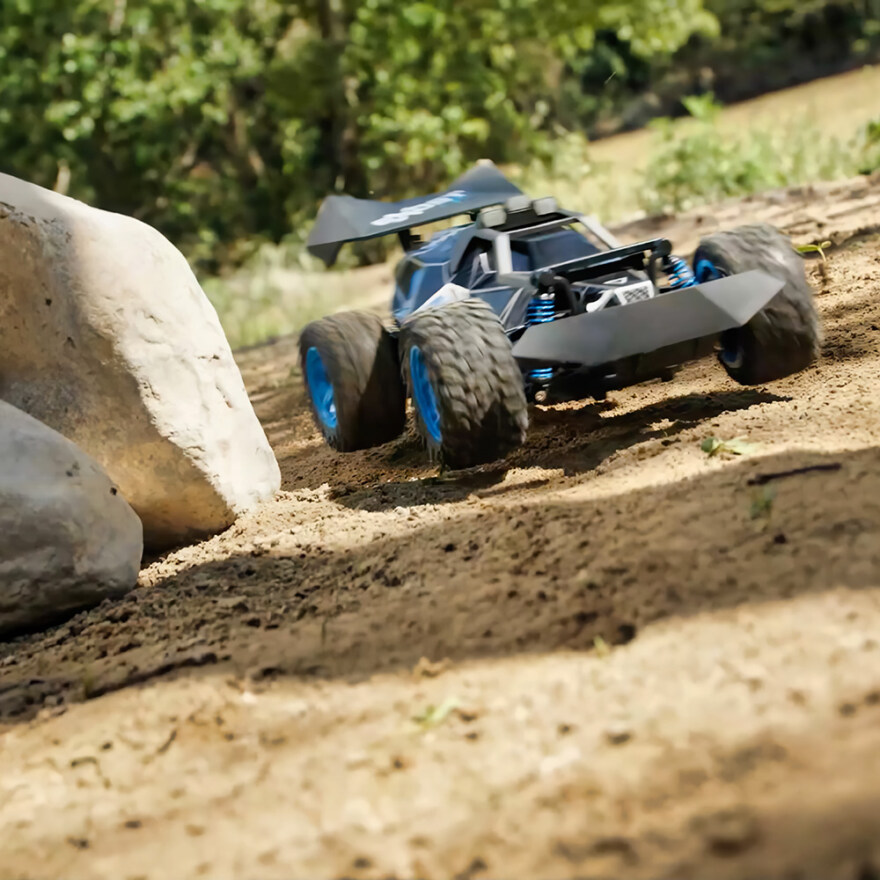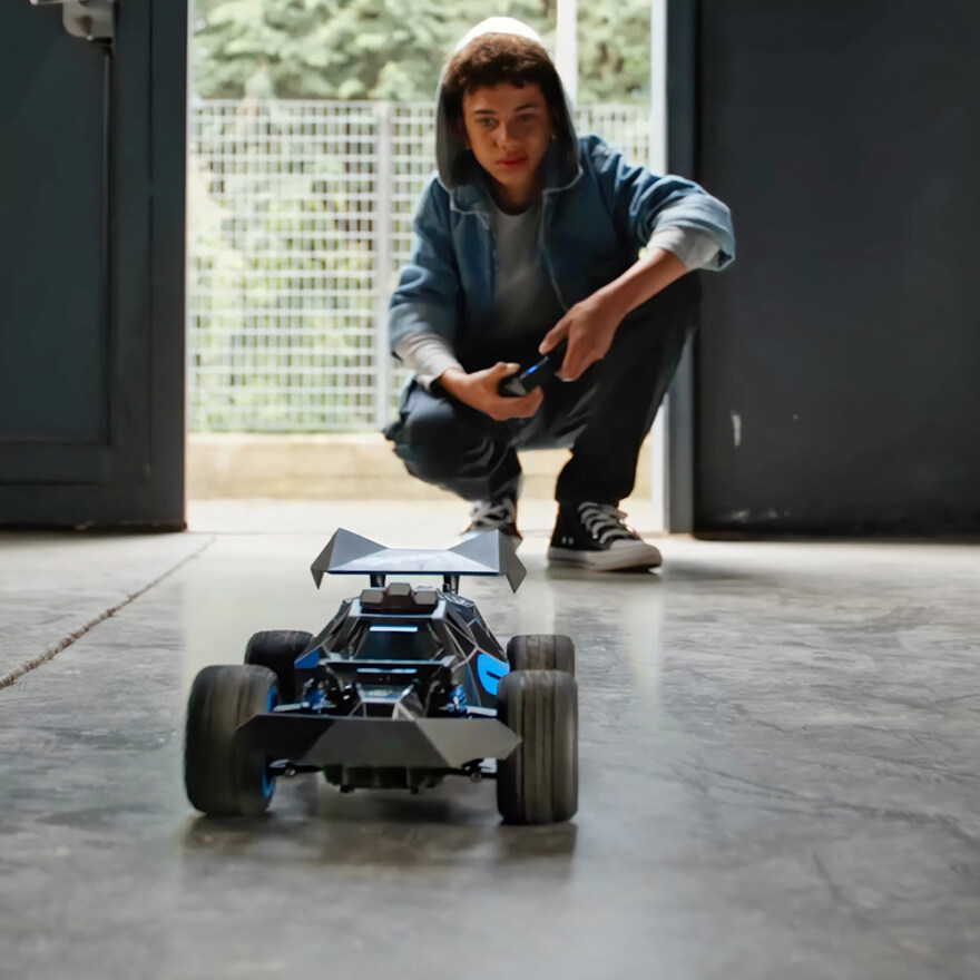 Gasa upp på raksträckor och ta skarpa svängar med lätthet tack vare precis styrning och växlar byggda för precision och enkel hantering. 2,4 GHz-frekvensen ger en stabil radiostyrning upp till 25 meter vilket ger dig full kontroll över ditt fordon.