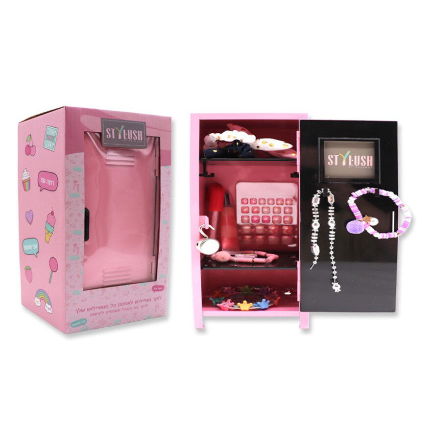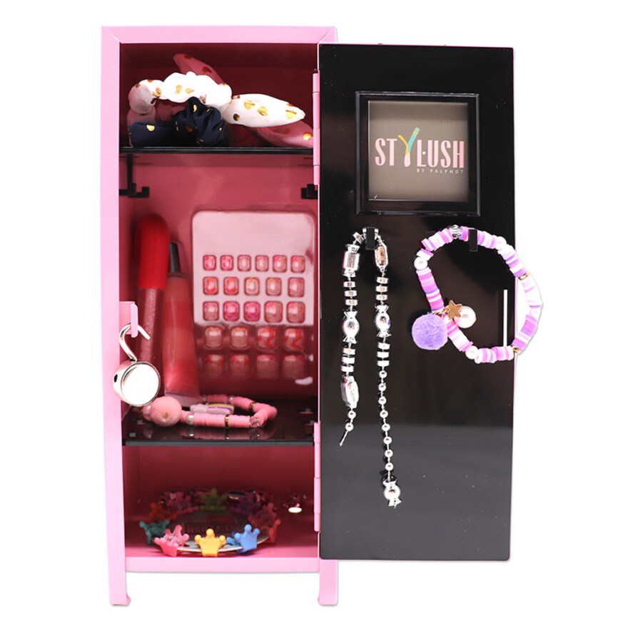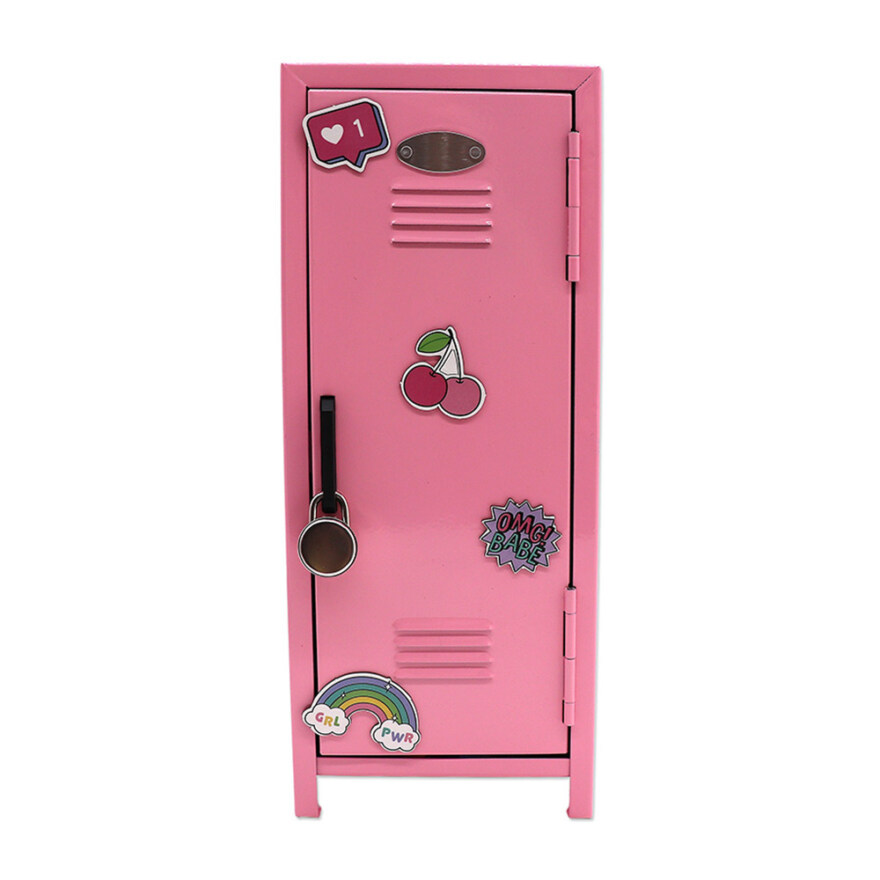 Smyckesskåpet i rosa ger dina accessoarer ett tryggt och stilfullt hem inspirerat av klassiska skåpmodeller från skolan. Dekorera skåpet med färgglada magnetmärken, forma det efter din stil och lås det med hänglåset och nycklarna. Organisera dina saker, samla dina skatter och skapa en personlig plats för allt du vill spara.
