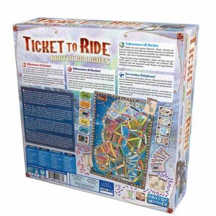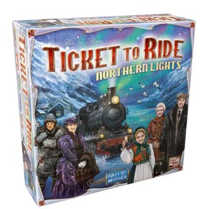 I Ticket to Ride Northern Lights reser du genom de nordiska länderna – Danmark, Norge, Sverige och Finland – och besöker de vackraste platserna i regionen. Utforska hamnhuvudstäderna, åk genom fjordar bortom polcirkeln och bygg järnvägar genom landsbygd, skogar och berg. Kartlägg färjelinjer som förbinder platser som Åbo skärgård och Bergen, och skapa Nordens största transportimperium!