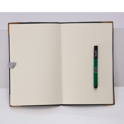 Allt du ska göra är att föra spetsen på trollstaven över sidorna så kommer det du skrivit att avslöjas på ett magiskt sätt! Dagboken har en vacker läderliknande bindning (ej äkta läder) med skyddshörn i patinerad metall.