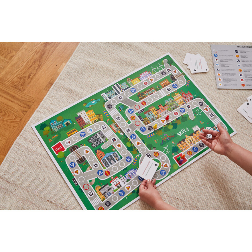 Trafikspelet är utformat för att lära barn om trafiksäkerhet samtidigt som det är roligt för hela familjen. Spelarna navigerar genom trafiken och stöter på olika frågor och vägskyltar som leder till diskussioner om trafiksäkerhet. Spelet betonar vikten av att förstå trafikregler, vägskyltar och allmän trafiksäkerhet, oavsett om man cyklar eller går.