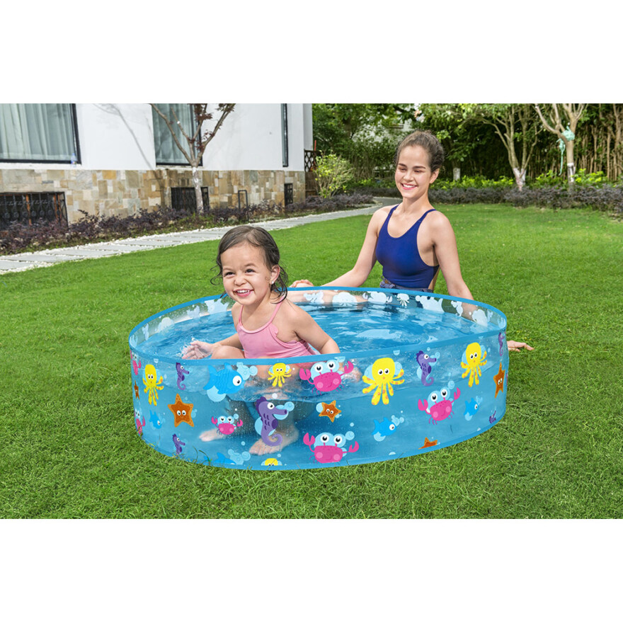Skapa svalkande badstunder med väggpoolen! Med en diameter på 122 cm och en höjd på 25 cm ger den gott om plats för barn att plaska och leka under varma dagar. Enkel att fylla med vatten och perfekt för trädgården. Barn ska alltid hållas under uppsikt av en vuxen vid bad.