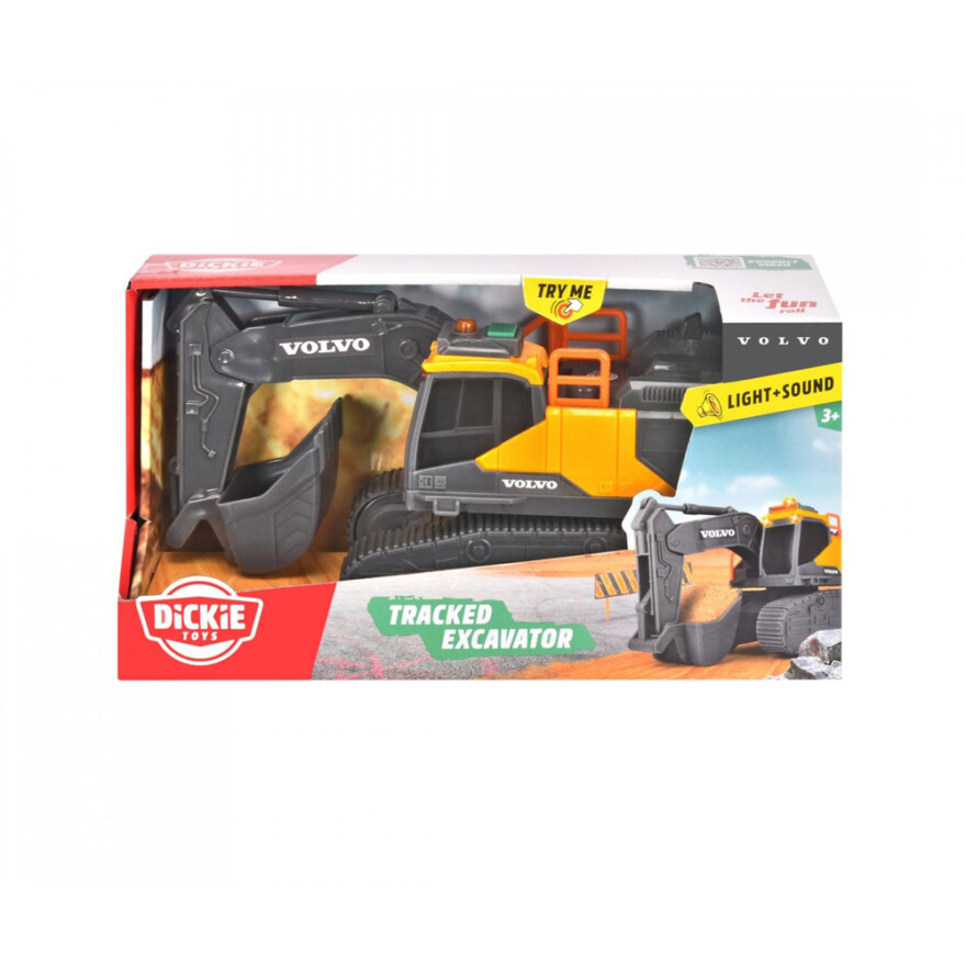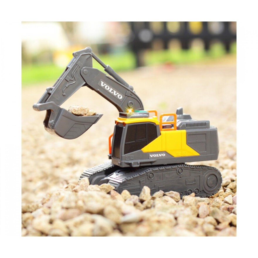 Volvo Tracked Excavator, 23cm låter barn gräva, lyfta och flytta material på sin egen byggarbetsplats. Kör grävmaskinen till arbetsområdet, höj och sänk grävarmen och fyll skopan med sand, jord eller leksaksmaterial. Tryck på knappen för att aktivera ljus och ljud och gör leken mer verklighetstrogen. Den rörliga armen och de rullande hjulen gör det enkelt att arbeta både inne och ute.